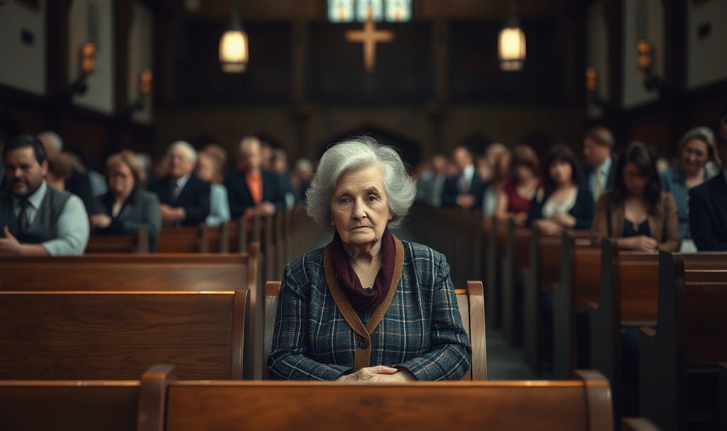The old lady in the second pew